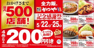 人気とんかつチェーン「かつや」が、創業記念感謝祭を実施中。期間限定で人気メニュー4品が割引価格で提供され、お得に楽しめるチャンス!SNSを中心に「かつや」がお得であるという情報が拡散され、大きな話題となっています。
