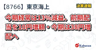 東京海上ホールディングス(8766)が5月20日に決算発表を行いました。2025年3月期の連結経常利益は前年比73.3%増の1兆4600億円と大幅な増益となりましたが、2026年3月期は13.0%減の1兆2700億円となる見通しです。一方で、年間配当は前期比38円増の210円に増配する方針も発表されました。アナリストの業績予想を上回る結果となりましたが、来期の減益予想が示されたことが注目されています。