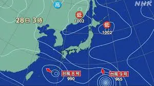 現在、日本周辺には台風8号と9号が存在し、それぞれが影響を及ぼしています。特に大型で強い台風9号は、現在小笠原諸島付近を北北西に進んでおり、29日にかけて小笠原諸島に最も接近する見込みです。中心の気圧は965ヘクトパスカル、最大風速35メートル、最大瞬間風速50メートルを観測しており、暴風や高波、激しい雨への厳重な警戒が呼びかけられています。その後、台風9号は動きが遅くなる見込みで、8月1日から2日頃には関東地方に接近する恐れも出てきています。気象庁は暴風や高波に加え、土砂災害や低い土地の浸水、落雷や突風への注意も呼びかけており、政府も24時間態勢で情報収集と対応に万全を期しています。