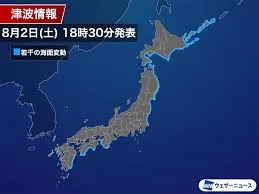 7月30日午前8時25分頃にカムチャツカ半島付近で発生したマグニチュード8.7の大地震による海面変動が、発生から3日以上経った8月2日現在も日本の太平洋沿岸で継続しています。これを受け、気象庁は同日18時30分に「津波予報(若干の海面変動)」を新たに発表しました。対象地域は北海道太平洋沿岸から宮崎県までの広範囲に及びます。この予報では、若干の海面変動は予想されるものの、津波による被害の心配はないとされています。しかし、今後さらに1日程度は海面変動が続く見通しであり、気象庁は海水浴や磯釣り、海での作業などを行う際には十分に注意するよう呼びかけています。現在、津波警報や津波注意報は発表されていませんが、念のための警戒が求められています。