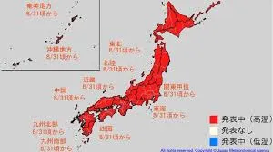 8月末から9月にかけて、全国的に「10年に一度」レベルの記録的な猛暑と残暑が続く見込みです。気象庁は「高温に関する早期天候情報」を発表し、8月31日頃から向こう2週間程度、全国的に「かなりの高温」が予想されています。特に、都市部では最高気温が35℃を超える猛暑日が連日続き、東京都心では年間猛暑日日数や連続猛暑日日数が過去最多を更新する可能性が高いとされています。 この猛暑は9月に入っても衰える気配がなく、特に8月31日には名古屋市で40℃に迫る暑さが予想されるなど、体温を超える危険な暑さが広範囲で続くでしょう。夜間も気温が25℃を下回らない熱帯夜が継続し、都市部のヒートアイランド現象も相まって、寝苦しい夜が続く見込みです。 一方で、北海道や東北では警報級の大雨の恐れがあり、北陸や関東から九州でも局地的に雨脚が強まる可能性があります。また、9月は台風シーズンでもあり、南の海上で発生する熱帯低気圧が日本列島に影響を与える可能性も指摘されており、引き続き気象情報への注意が呼びかけられています。熱中症への厳重な警戒とともに、適切な水分・塩分補給、冷房の積極的な利用、不要不急の外出を控えるなどの対策が不可欠です。