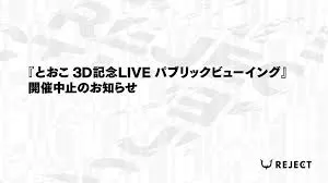 人気VTuberとおこさんの「3D記念LIVE パブリックビューイング」が、悪質な犯行予告を受け、開催中止となりました。プロe-SportsチームREJECTが主催するこのイベントは、とおこさんの誕生日とデビュー日である10月5日(日)に東京・池袋の新文芸坐で開催が予定されていましたが、「安全配慮上看過できない」と判断され、来場者・出演者・スタッフの安全を最優先に中止が決定されました。既に警察をはじめとする関係機関へ報告・協力依頼済みで、チケット購入者には払い戻しが実施されます。とおこさんは、穏やかな人柄とポジティブな発言で多くのファンを持つVTuberで、今回の事態にSNSで「本当に申し訳ありません」「悲しい分、当日少しでも皆さんに笑顔になって貰える時間にしたい」とコメントし、ファンに心を寄せています。