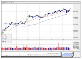 22日の日本株市場は、前日のNYダウが最高値を更新したことや、高市政権への期待感から買い先行で堅調な展開が予想されています。日経平均株価は一時5万円に迫る49945.95円まで上昇しましたが、利益確定売りに押されて下落する場面も見られました。しかし、市場では短期的な調整と捉えられており、5万円を意識した上昇トレンドは継続するとの見方が強いです。米国では決算発表が本格化し、好決算銘柄がNYダウを牽引する一方で、米中通商合意への懸念や一部企業の決算不調による下落も見られます。このような状況下で、日経平均株価に大きな影響を与える値がさハイテク株の一つであるソフトバンクグループ(9984)の動向が、市場参加者の注目を集めています。利食い優勢の局面では、相対的に出遅れている内需株に資金がシフトする動きも予想されています。
