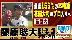 プロ野球ドラフト会議で、花園大学の藤原聡大投手が楽天から単独1位指名を受けました。これは花園大学にとって初のプロ野球選手誕生という歴史的な快挙となります。藤原投手は最速156キロの本格派右腕で、高校時代は遊撃手でしたが、大学で投手に転向しわずか数年で急成長を遂げました。その高い身体能力は「忍者右腕」と称され、50メートル走6秒1、遠投115メートル、ボックスジャンプ1メートル55センチの跳躍力を持つ逸材です。ドラフト会議前は不安な心境を明かしながらも、「自分一人の夢ではない」「他喜力」を大切にしていると語り、花園大学OBのお笑い芸人・安田大サーカスのクロちゃんからもエールが送られるなど、学内外からの大きな期待を集めていました。指名を受けた際には笑顔を見せ、プロの舞台での活躍に意欲を見せています。