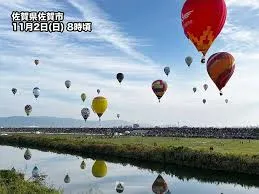 佐賀の秋の風物詩である「佐賀インターナショナルバルーンフェスタ」が、10月30日(木)から11月3日(祝)までの5日間、佐賀市嘉瀬川河川敷で開催されています。昨年は悪天候でほぼ全日程が中止となったため、今年は2年ぶりの開催となり、国内外から多くの注目を集めています。世界20の国と地域から124機もの熱気球が参加し、期間中80万人の来場者が見込まれています。イベントでは、早朝からの競技飛行に加え、タコやクジラなどの巨大な変形気球が楽しめる「バルーンファンタジア」が子どもたちに人気です。また、夜にはバーナーの炎でバルーンが美しくライトアップされる「ラ・モンゴルフィエ・ノクチューン(夜間係留)」が行われ、幻想的な光景が来場者を魅了しています。会場内には佐賀の山海の幸を堪能できる「うまかもん市場」も大集結し、グルメやワークショップなど、朝から晩まで一日中楽しめる内容となっています。