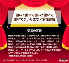 今年の「現代用語の基礎知識選 2025T&D保険グループ新語・流行語大賞」年間大賞に、高市早苗首相の「働いて働いて働いて働いて働いてまいります」が選ばれました。この言葉は、高市首相が自民党総裁に選出された際に、日本国民への貢献意欲を示す力強い意気込みとして語られたものです。しかし、その一方で、「ワーク・ライフ・バランスを捨てる」「馬車馬のように働いてもらう」といった発言も伴っていたため、長時間労働を助長するとして物議を醸しました。特に過労死遺族からは批判の声が上がり、働き方改革に逆行するのではないかとの懸念が示されています。高市首相自身は、授賞式で「働き過ぎの勧奨ではない」と釈明しましたが、選考委員による「共感した昭和世代も多かったのでは」という選考理由に対しても、労働問題の専門家などからは困惑や危惧が広がっています。