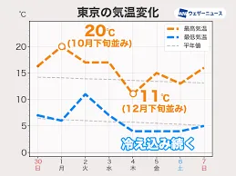 12月に入り、日本列島は気温の大きな変化に直面しています。週の初めは小春日和となる地域もありますが、3日(水)から4日(木)にかけては、今シーズンこれまでで最も強い寒気が南下し、全国的に冬本番の厳しい寒さとなる見込みです。 この強い寒気の影響で、北海道から北陸、近畿北部、山陰地方の日本海側では広く雪が降り、山沿いを中心に大雪となる恐れがあります。また、普段は雪の少ない西日本や四国、九州の山沿いでも積雪の可能性があり、平地での積雪や強い風を伴う吹雪にも厳重な警戒が必要です。 気温も急激に低下し、東京都心、名古屋、大阪など多くの地域で日中の最高気温が10℃前後にとどまり、12月下旬から真冬並みの寒さとなるでしょう。体感温度はさらに低くなるため、厳重な防寒対策が求められます。 気象庁の3か月予報では全国的に平年並みの寒さとされていますが、1月には西日本や沖縄で平年より低い気温になる可能性が高く、地域によっては例年以上に厳しい冬となる見込みです。スタッドレスタイヤへの交換など、雪道への事前の備えが強く呼びかけられています。