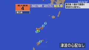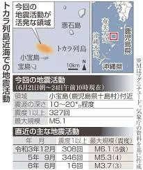 鹿児島県のトカラ列島近海で、6月21日頃から地震活動が活発化しており、24日までに震度4を複数回観測、震度1以上の地震が350回以上発生しています。特に十島村悪石島では連日強い揺れが続き、住民は不安な夜を過ごし、学校ではヘルメット着用が指示されるなど、生活に影響が出ています。