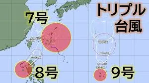 複数の台風が日本に接近しており、特に台風7号、8号、9号の「トリプル台風」が注目されています。台風7号は25日未明にかけて沖縄地方に最接近する見込みで、うねりを伴う高波や土砂災害、低い土地の浸水、河川の増水に警戒が必要です。落雷や竜巻などの激しい突風の危険性も指摘されています。一方、台風8号は南シナ海をゆっくりと東南東へ進み、26日には那覇市の南西に接近後、熱帯低気圧に変わる予想ですが、暴風域を伴う可能性があります。そして、マリアナ諸島付近で発生した台風9号は、今後勢力を強めながら北上し、27日には小笠原近海で暴風域を伴う強い台風となる予報です。これら複数の台風が同時に日本列島、特に沖縄地方や小笠原諸島周辺に影響を及ぼす可能性があり、今後の進路情報に厳重な警戒と注意が呼びかけられています。
