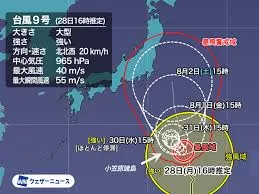 現在、日本周辺には台風8号と9号が存在し、それぞれが影響を及ぼしています。特に大型で強い台風9号は、現在小笠原諸島付近を北北西に進んでおり、29日にかけて小笠原諸島に最も接近する見込みです。中心の気圧は965ヘクトパスカル、最大風速35メートル、最大瞬間風速50メートルを観測しており、暴風や高波、激しい雨への厳重な警戒が呼びかけられています。その後、台風9号は動きが遅くなる見込みで、8月1日から2日頃には関東地方に接近する恐れも出てきています。気象庁は暴風や高波に加え、土砂災害や低い土地の浸水、落雷や突風への注意も呼びかけており、政府も24時間態勢で情報収集と対応に万全を期しています。