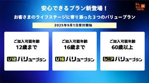 KDDIと沖縄セルラーは2025年9月1日より、ライフステージに応じた3つの新しい料金プランの提供を開始します。12歳以下を対象とした「U12バリュープラン」は、通信速度を最大300kbpsに制限することで、動画やゲームの使い過ぎを防ぎます。月額1,870円(各種割引適用後550円)で、子どもの安全を守る「コドマモ」や英語学習アプリ「auキッズラボ」が追加料金なしで利用可能です。16歳以下向けの「U16バリュープラン」は、データ容量3GBまで(1,078円)と20GBまで(2,728円)の2段階制で、利用状況に応じた選択肢を提供します。60歳以上を対象とする「シニアバリュープラン」は、データ容量5GBと5分間の国内通話かけ放題が含まれ、迷惑電話対策オプションが無料。さらにauじぶん銀行の円普通預金金利が年0.55%に優遇されます(月額2,728円)。これらの3プランはすべて、衛星通信サービス「au Starlink Direct」に対応しています。また、9月中旬からは24時間データ使い放題の「データ1日放題」(550円)も提供開始されます。なお、既存の「スマホスタートプランベーシック/ライト」は8月31日をもって新規受付を終了します。