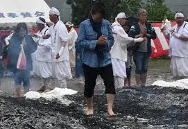 無病息災願い裸足で火渡り 南魚沼・坂本神社 /新潟