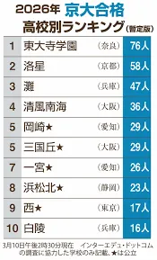 3月10日は東京大学および京都大学の合格発表日であり、これに合わせて受験情報サイト「インターエデュ・ドットコム」が、産経ニュースや大学通信と協力し、両大学の高校別合格者数ランキングをリアルタイムで速報しました。各メディアは、アンケートに基づいた暫定値を公開し、特に巣鴨学園の東大合格者数13人(現役11人)の大躍進が「古豪復活」として注目を集めました。また、例年上位を占める灘や聖光学院などの高校も速報段階で上位に名を連ねています。これらの情報は、受験生やその保護者、教育関係者にとって、最新の入試動向や各高校の進学実績を把握する上で極めて重要なものとなっています。ただし、ランキングは速報値であり、今後変動する可能性があることも示唆されています。