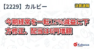 カルビーは2025年11月5日、2026年3月期の通期連結経常利益および純利益について下方修正を発表しました。これにより、通期経常利益は従来予想の304億円から263億円へ、純利益は前期比16%減の175億円となる見込みです。この発表を受け、同社の株価は一時的に約5%下落しました。