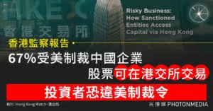 香港監察報告|67%受美制裁中國企業股票可在港交所交易 投資者恐違美制裁令