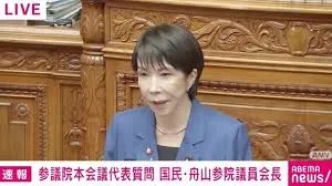 参院本会議で、高市早苗首相の所信表明演説に対する代表質問が行われ、自民党の派閥裏金事件が主要な焦点となりました。高市首相は、同様の問題が再発した場合には「これまで以上に厳しく対処する」と表明したものの、企業・団体献金の規制強化案については慎重な姿勢を崩しませんでした。また、裏金問題で"出禁"状態となっている佐藤官房副長官については、高市首相が「有為の人材」として擁護する場面も見られました。連立を離脱した公明党も「野党」として登壇し、斉藤鉄夫代表が「政治とカネ」の問題を一刻も早く決着させるべきだと、抜本的な政治改革を強く迫りました。国会での政治資金を巡る攻防は続き、国民の関心を集めています。
