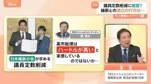 衆議院の議員定数削減を巡り、自民党と日本維新の会が「1割を目標」とする合意を形成し、議論が活発化しています。日本維新の会が主張する比例代表50議席の削減案に対し、高市総理(※収集した情報に基づいています)は「納得感を得られる規模だ」として「身を切る改革」の一歩だと意義を強調しました。しかし、公明党や立憲民主党などの野党は、「1割削減」の具体的な根拠や、与野党間の幅広い合意形成を求めて反発しています。