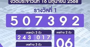 ผลสลากกินแบ่งรัฐบาล ตรวจหวย 16 มิถุนายน 2568 งวดล่าสุด ตรวจรางวัลที่นี่