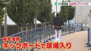 キャンプ初日には、新庄監督がキックボードで球場入りする恒例のパフォーマンスを見せ、新スローガン「DOMIれ!」(支配する、圧倒的に勝ち切るという決意)が発表されました。万波中正選手がノースリーブ姿で練習する姿や、新選手会長となった清宮幸太郎選手が居残りで守備練習を披露しファンを沸かせました。また、開幕戦で「4番サード」を明言されている郡司裕也選手が新背番号「3」を披露。WBC日本代表に選出された北山亘基投手への新庄監督からのアドバイスや、プロ5年目の達孝太投手のブルペン入りも報じられています。さらに、キャンプ恒例の「新庄ランチ」も報道陣に振る舞われ、活気あふれるスタートとなりました。