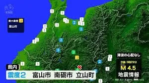 飛騨地方で最大震度4の地震 富山県内は震度2(北日本放送)