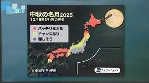 2025年10月6日は旧暦8月15日にあたり、「中秋の名月」として親しまれる十五夜です。今年は満月の瞬間が翌日の7日(火)となるため、厳密には一日違いですが、ほぼ真ん丸の月を楽しむことができます。お月見の天気は地域によって異なり、北海道や西日本(沖縄、九州、近畿、北陸)では晴れて美しい月が見られる予報です。しかし、東北南部太平洋側から関東、東海にかけては雲が多く、「中秋無月」となる可能性もあります。今年は月の近くに土星も輝き、月との共演も見どころの一つです。また、ウェザーニュースやRCC中国放送などでは、お月見のライブ配信も行われ、各地の様子をリアルタイムで楽しめます。中秋の名月は平安時代に中国から伝わった習慣で、「芋名月」や「三五の月」といった別名も持ちます。