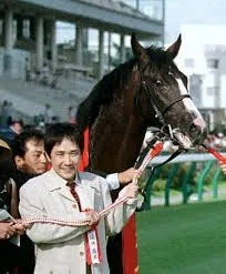 01年新潟2歳Sを制したバランスオブゲームと喜びあふれる薗部博之オーナー