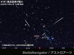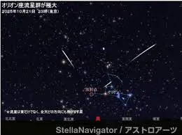 オリオン座流星群が2025年10月21日に極大を迎えることが話題になっています。極大時刻は21時頃と予測されていますが、この流星群はピークがなだらかなため、21日の深夜から22日の明け方にかけてだけでなく、前後数日間も観測チャンスがあります。特に、放射点が昇ってくる午後10時頃から夜明けにかけてが見ごろとされています。今年はちょうど新月期にあたるため、月明かりの影響を気にせず流星を観察できる絶好の条件です。母天体はあのハレー彗星で、その軌道上にまき散らされた塵が地球の大気圏に突入する際に流れ星として輝きます。通常、1時間あたり10個程度の流星が見られると予想されていますが、過去には2006年に1時間あたり60個以上の大出現が観測されたこともあります。流星はオリオン座の方向だけでなく、空の広範囲に現れるため、防寒対策をしっかりとして空全体を見渡しながら観測するのがおすすめです。