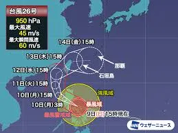 台風26号は今後、南シナ海を北上し、週後半には台湾付近を経て沖縄の先島諸島近海へ進む見込みです。次第に勢力を弱め、14日には熱帯低気圧に変わる予想ですが、沖縄地方では高波や強風、大雨となる恐れがあり、気象庁やウェザーニュースなどが最新情報への注意を呼びかけています。気象庁、米軍合同台風警報センター(JTWC)、ヨーロッパ中期予報センターなど、各機関の進路予想が報じられ、その動向に注目が集まっています。
