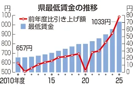 具体的には、山形県では現行の955円から77円引き上げの1032円、福島県では78円引き上げの1033円とする答申が出されており、いずれも過去最大の引き上げ額となります。これらの県では、経営悪化の懸念から審議が難航する異例の事態もありましたが、賛成多数で可決されました。山形県では12月23日から適用される見込みです。