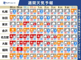 一方で、北日本では周期的に雨が降り、30日頃には日本海側で「警報級の大雨」となる恐れがあり、9月上旬にかけても曇りや雨の日が多くなる見通しです。