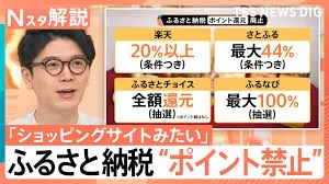 10月からふるさと納税の仲介サイトによるポイント付与が禁止されます。これは、仲介サイト間でポイント還元を巡る競争が過熱し、制度本来の目的である「ふるさとや応援したい自治体への寄付」からかけ離れていると総務省が判断したためです。村上総務大臣は、「ふるさと納税はいわゆるインターネット通販であってはならない」と述べ、自治体や事業者に適切な対応を求めています。利用者は1000万人を超え、寄付受入額も過去最高の1兆2728億円に達するなど、人気の高い制度ですが、今回のポイント付与禁止を受け、9月中の「駆け込みラッシュ」が予想されています。一部の利用者や自治体からは、ポイントがなくなることへの反発や、仲介サイトの手数料の高さへの不満も上がっており、制度の今後のあり方が議論されています。