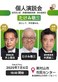 現在行われている参議院選挙において、自民党の候補者である武見敬三氏が活発な選挙活動を展開し、注目を集めています。同氏は、参院選東京選挙区から出馬しており、街頭演説や個人演説会を東京都内各地で実施。主要な政策として、緊迫する国際情勢における日本の国防強化を訴えるとともに、少子高齢化・人口減少社会に対応するため「活力ある健康長寿社会」の実現を目指すことを強調しています。厚生労働相を務めた経験を持つ武見氏は、その知見を活かし、日本の安全保障と社会保障の両面における喫緊の課題解決への意欲を示しており、井上信治氏や木原誠二氏、朝日けんたろう氏、鈴木隼人氏といった自民党の主要メンバーからの応援も受けています。