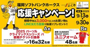 プロ野球のクライマックスシリーズ(CS)を目前に控え、「ソフトバンク」関連の話題が盛り上がりを見せています。福岡ソフトバンクホークスを巡る複数の応援キャンペーンが進行中であることが主な要因です。不動産クラウドファンディング「LEVECHY」を展開する株式会社LEVECHYは、ホークスのオフィシャルスポンサーとして「2025 パーソル クライマックスシリーズ パ」第2戦のゲームスポンサーを務めます。これを記念し、LEVECHYの無料会員登録とエントリーでCS観戦ペアチケットやオンユアマークス参加権利が当たるキャンペーンを9月12日から30日まで実施しています。また、明太子の老舗「ふくや」も「明太子パワーで全力応援!」と題し、ホークス応援キャンペーンを展開。ふくや直営店で3,000円(税込)以上購入し、公式LINEから応募すると、CS観戦チケット引換券や「鷹祭 SUMMER BOOST 2025ユニフォーム」が当たる企画を9月13日から30日まで開催しています。これらのキャンペーンは、ホークスのCS進出が期待されるシーズン終盤に、ファンを巻き込む形で応援熱を高めています。