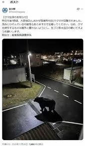 近年、宮城県内ではクマの目撃情報が急増し、人里への出没が頻発しています。中でも女川町では、11月25日夕方に「しおかぜ保育所」近くでクマが目撃されたと報じられ、町が公式X(旧Twitter)で注意喚起を行いました。この際、投稿された道路上の巨大なクマの画像は、その迫力からSNS上で大きな反響を呼び、「でかい」「怖い」といった声が多数寄せられました。しかし、その後、町が投稿したこのクマの画像はAIなどで生成されたフェイク画像であることが判明。作成者本人から町へ連絡があり、町も速やかに訂正と謝罪を行いました。この一件は、地域社会の安全確保への関心の高まりと同時に、インターネット上の情報、特に災害や危険に関する情報の真偽を見極める情報リテラシーの重要性を改めて浮き彫りにする出来事となりました。