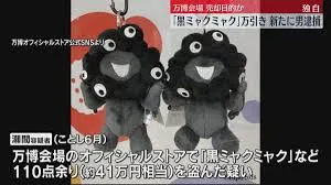 大阪・関西万博の公式ストアで、公式キャラクター「ミャクミャク」のグッズが大量に万引きされた事件が報じられました。特にSNS上で「黒ミャクミャク」と呼ばれる人気の黒いマスコットが多数含まれており、計100点以上、約41万円相当が盗まれたとされています。この事件では、東京都に住む大学生3人が関与しており、新たに21歳の男が逮捕されました。残りの2人はすでに逮捕・起訴されています。彼らはフリマサイトでの転売目的で、高額で売れる限定品や人気商品を狙ったとみられています。一部の容疑者は容疑を一部否認しているものの、転売目的であったことは供述から明らかになっています。万博会場では同様の万引き事件が相次いでいることから、警察は警戒を強化し、グループの実態解明を進めている状況です。