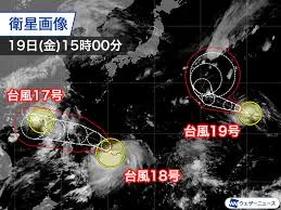 日本列島の周辺では、現在、台風17号、18号、19号の3つの台風が発生しています。このうち台風17号は日本への直接的な影響はない見込みですが、台風18号と19号の動向が注目されています。