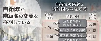 自衛隊は国の安全保障を担う重要な組織であるため、その根本的な制度変更は国民の強い関心を集めています。特に、国際情勢が不安定な中、自衛隊の国際的な役割や位置づけが注目されており、階級名の国際標準化が国際協力の円滑化や自衛官の地位向上に繋がるという期待があるためです。また、「軍事色を避ける」というこれまでの姿勢からの転換点と捉えられ、国防意識の高まりと相まって、その是非や影響について活発な議論が交わされています。