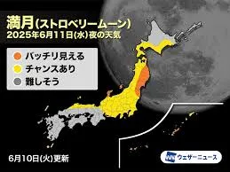 6月の満月「ストロベリームーン」は、観測条件も重なりいつもより特別。各地の天気と観測スポットを紹介。