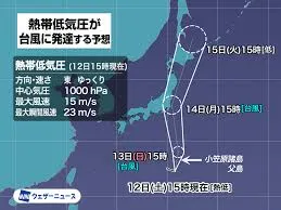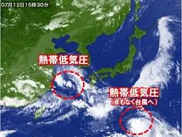 日本の近海に2つの熱帯低気圧が発生し、日本列島全体で大雨や台風の影響が懸念されています。父島の南にある熱帯低気圧は今後24時間以内に台風5号に発達し、明日13日には小笠原諸島に最接近、14日には関東から北日本にかけて接近・北上する見込みです。一方、九州の西にあるもう一つの熱帯低気圧は、13日に西日本に接近し、湿った空気の影響で激しい雨をもたらす恐れがあります。特に西日本では、すでに大雨に見舞われている地域で土砂災害や河川の増水に一層の警戒が必要です。東日本や北日本でも雨や風が強まる可能性があります。さらに、この期間中は西日本を中心に猛烈な暑さとなる予想で、熱中症への厳重な警戒も呼びかけられています。ダブルの気象現象に注意が必要です。