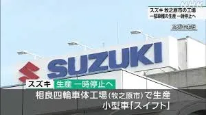 「スズキ」静岡 牧之原の工場での一部車種の生産 一時停止へ