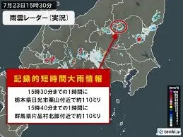 群馬県内で24日午後、記録的短時間大雨情報が発表され、局地的に猛烈な雨が降っています。みどり市東町付近では1時間に約100mmの雨量を解析し、気象庁は「数年に一度程度しか発生しないような大雨」として警戒を呼びかけています。これに伴い、片品村、桐生市、みどり市には土砂災害警戒情報や大雨警報、洪水警報が発表されました。大気の状態が非常に不安定で、午後遅くから夜にかけても土砂災害、低い土地の浸水、河川の増水に厳重な警戒が必要です。また、落雷や竜巻などの激しい突風、降ひょうにも注意が呼びかけられています。地元自治体からの避難情報に留意し、早めの安全確保が求められています。