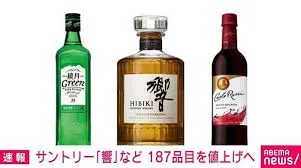 サントリーは2026年4月1日出荷分から、ウイスキー、輸入ワイン、焼酎の計39銘柄を2~20%値上げすると発表しました。主な対象は、「響」「山崎」「白州」といった人気国産ウイスキー3銘柄(希望小売価格で6~15%値上げ)、輸入ワイン26銘柄(カタログ価格ベースで2~6%値上げ)、そして「鏡月Green」など焼酎10銘柄(希望小売価格で2~20%値上げ)です。今回の値上げは、原材料価格の高騰や輸送コストの上昇が続き、企業努力だけではこれらを吸収することが極めて困難になったためと説明されています。具体的には、「サントリーウイスキー響 JAPANESE HARMONY」(700ミリリットル)が税抜き7,500円から8,000円になるなど、消費者に直接影響が及ぶことが予想されます。