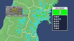 2025年8月22日午前7時34分ごろ、宮城県沖を震源とするマグニチュード5.4の地震が発生しました。この地震では、岩手県と宮城県の一部地域で最大震度3の揺れを観測しました。また、青森県、秋田県、山形県、福島県、茨城県、栃木県といった東北から関東にかけての広範囲で、震度2や震度1の揺れが確認されました。震源の深さは約40kmと推定されており、幸いなことにこの地震による津波の心配はありませんでした。早朝の発生であったため、各地で地震速報が報じられ、多くの人が揺れを感じ、情報に関心を寄せました。