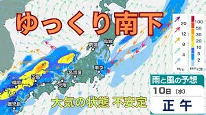 秋雨前線がゆっくりと南下しており、10日から11日にかけて北日本から西日本の広範囲で、雷を伴う激しい雨が降る見込みです。特に、九州北部、中国地方、関東甲信などでは局地的に非常に激しい雨が予想されており、低い土地の浸水、急な川の増水、土砂災害、落雷、竜巻などの激しい突風、ひょうに厳重な注意が必要です。特に10日朝の通勤・通学時間帯は日本海側で大雨となる見込みで、交通機関への影響も懸念されます。