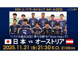 FIFA U-17ワールドカップで快進撃を続けるU-17日本代表は、史上初のベスト4入りをかけて、準々決勝でU-17オーストリア代表と対戦します。日本はラウンド16でU-17北朝鮮代表にPK戦の末に勝利し、14年ぶりの8強入りを果たしました。対するオーストリアは、ラウンド16で強豪イングランドを4-0で破るなど、今大会のダークホースとして注目されています。この歴史的な一戦は日本時間21日21時30分にキックオフ。廣山望監督はラウンド16から5人を変更したスターティングメンバーを発表し、累積警告明けのMF姫野誠も先発に名を連ねています。JFAサッカー文化創造拠点「blue-ing!」ではパブリックビューイングも開催され、多くのファンが若き日本代表の躍進に期待を寄せています。