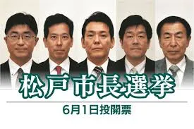 千葉県松戸市長選挙が告示され、新人5名が立候補しました。現市長の辞職に伴う選挙で、子育て支援策や市役所建て替えなどが争点となっています。投票は6月1日に行われ、即日開票されます。投票率は前回を下回る35.01%でした。