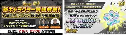スマートフォンアプリ「ドラゴンボール レジェンズ」は、7周年キャンペーンの締めくくりとして、新キャラクター情報解禁を含む特別生配信を2025年7月8日23時に実施すると発表しました。この「新キャラクター情報解禁!7周年キャンペーン最後の特別生配信」では、MCに水上侑さん、プロデューサーのTANI氏らが出演し、最新情報を公開します。さらに、放送中の同時接続者数に応じた「刻の結晶」プレゼント企画や、オリジナルグッズのプレゼントコーナーも用意されています。特に注目すべきは、スペシャル企画として影山ヒロノブさんによる「CHA-LA HEAD-CHA-LA」のライブ映像が配信冒頭から公開される点です。ファンにとっては見逃せない内容が盛りだくさんの生配信となるでしょう。