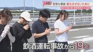 福岡市東区の「海の中道大橋」で2006年に発生した飲酒運転による3児死亡事故から、今年で19年を迎えました。飲酒運転の車に追突され、海に転落したRVに乗っていた幼い3人のお子さんを亡くした母親の大上かおりさん(48)が、この節目に飲酒運転撲滅への強い思いを訴えています。大上さんは、事故後に生まれた4人のお子さんたちと共に北九州市で開かれた県民大会に初めて参加し、「いつかこの集まりを解散できる日が来たら良い。その時が飲酒運転を撲滅できた時だ」と語りました。福岡市役所でも飲酒運転ゼロを誓う集会が開かれ、高島市長も「悲しみや喪失感は消えない。風化させることなく命を守る取り組みを進める」と表明。事故現場には献花に訪れる人の姿も見られ、19年が経過してもなお、飲酒運転の悲惨さと撲滅への願いが社会に深く刻まれていることを示しています。