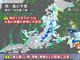 10月1日は全国的に大気の状態が非常に不安定となり、特に東日本から北日本にかけては、落雷や竜巻などの激しい突風、降ひょう、急な強い雨、そして警報級の大雨に注意が必要です。西日本から東日本にはこの時期としては強い寒気が流れ込み、暖かく湿った空気とぶつかることで積乱雲が発達しやすい状況となっています。これにより、広い範囲で傘の出番となり、局地的に激しい雷雨が予想されています。気温については地域差が大きく、関東から東北では雨の影響で気温が上がらず、肌寒い一日となる見込みです。一方、西日本や東海では晴れ間もあって30℃近い真夏日となる地域もあり、まだ残暑が続いています。日ごとや朝晩の気温差も大きいため、体調管理や服装選びには十分な注意が必要です。