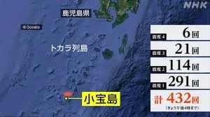 鹿児島県のトカラ列島近海で、今月21日以降、活発な地震活動が続いています。25日夕方までに震度1以上の地震が432回以上観測され、特に23日には175回と集中しました。このうち、十島村の悪石島では震度4の揺れが6回発生しています。住民からは「揺れで目が覚める」「酔ってきた」といった疲労や不安の声が聞かれ、早期の終息が願われています。過去にも群発地震が発生してきましたが、今回は2021年や2023年の活動を上回るペースでの頻発が特徴です。気象庁や専門家は、当分の間、強い揺れを伴う地震への注意を呼びかけています。地震の最大規模はマグニチュード5.1で、津波の心配はありませんが、南海トラフ巨大地震との直接的な関連性はないと専門家が指摘しています。